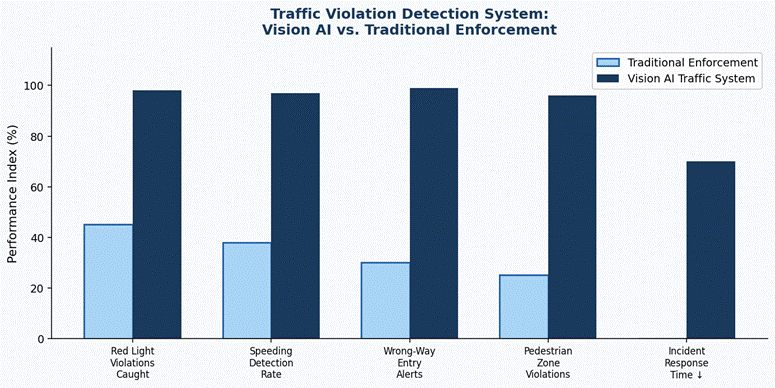 Figure 1: Traffic violation detection - Vision AI vs. traditional enforcement across key violation categories.