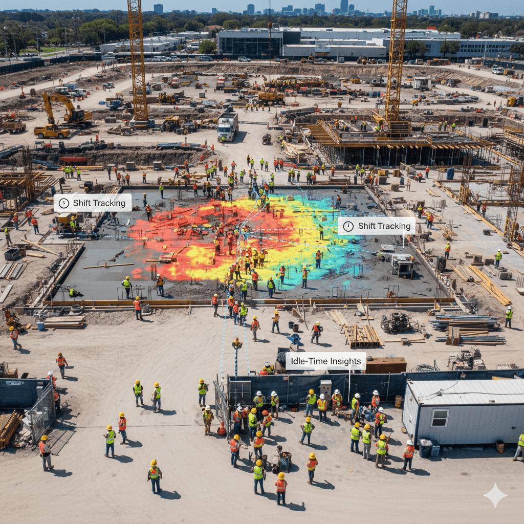 Vision AI uses intelligent video analytics to monitor safety, worker activity, and site operations.