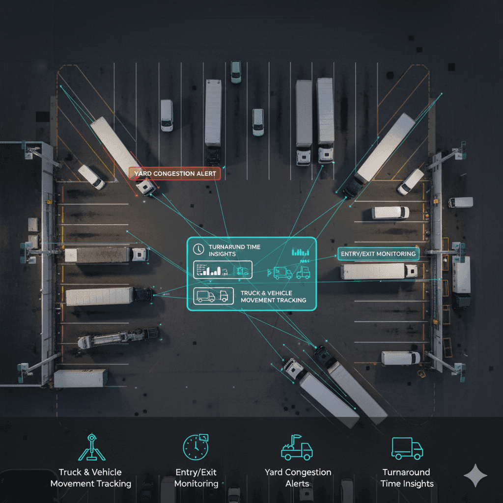 Warehouse/yard cameras collect real-time video.
